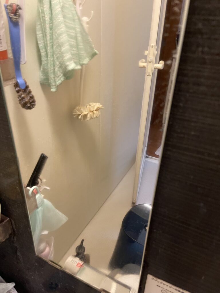 で、まず先にやったのが、お風呂の鏡の水垢とりです。