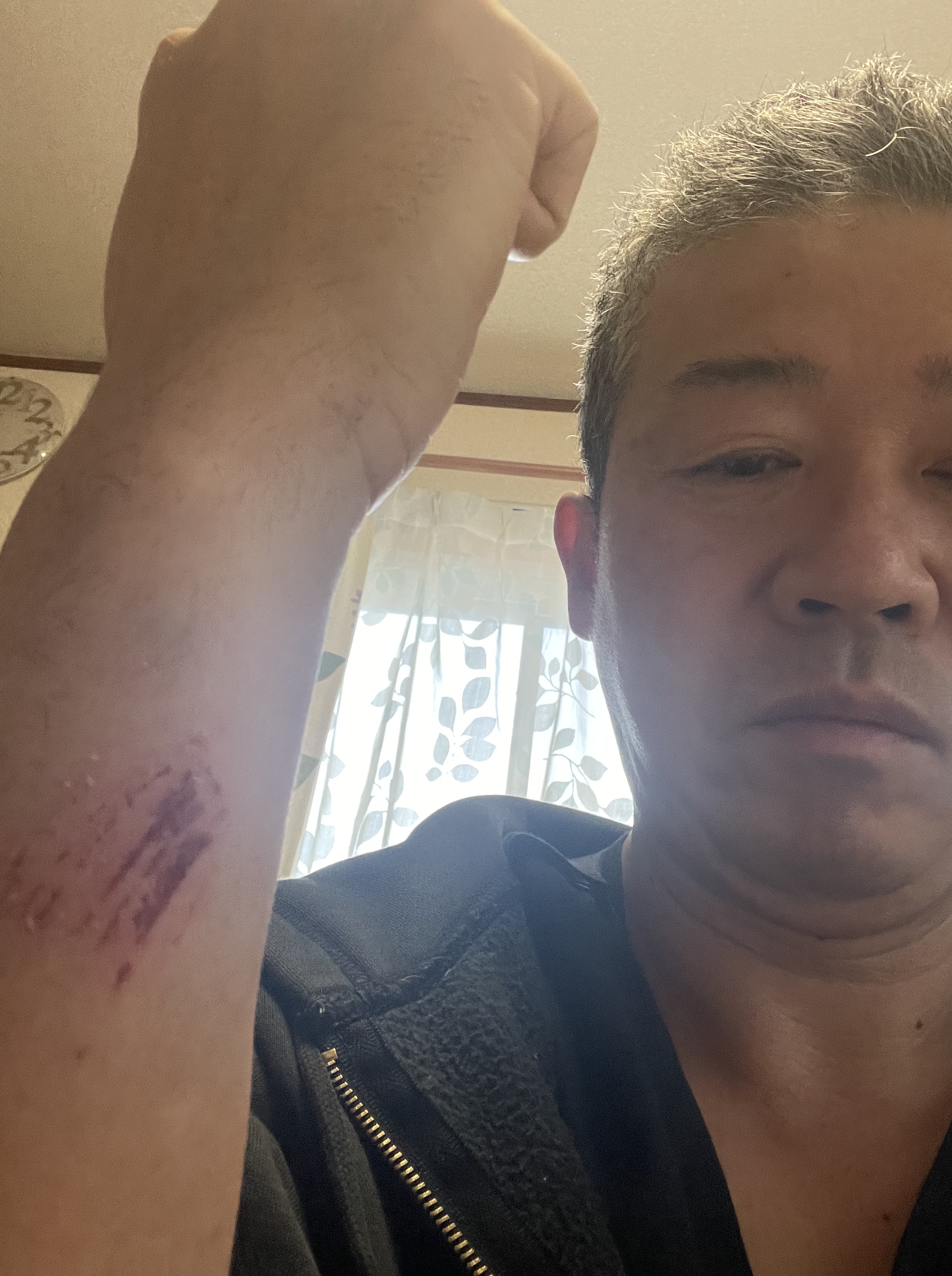 左足首を軽く捻って、右の手首の近くを擦りむいて家に帰ってきましたよ。