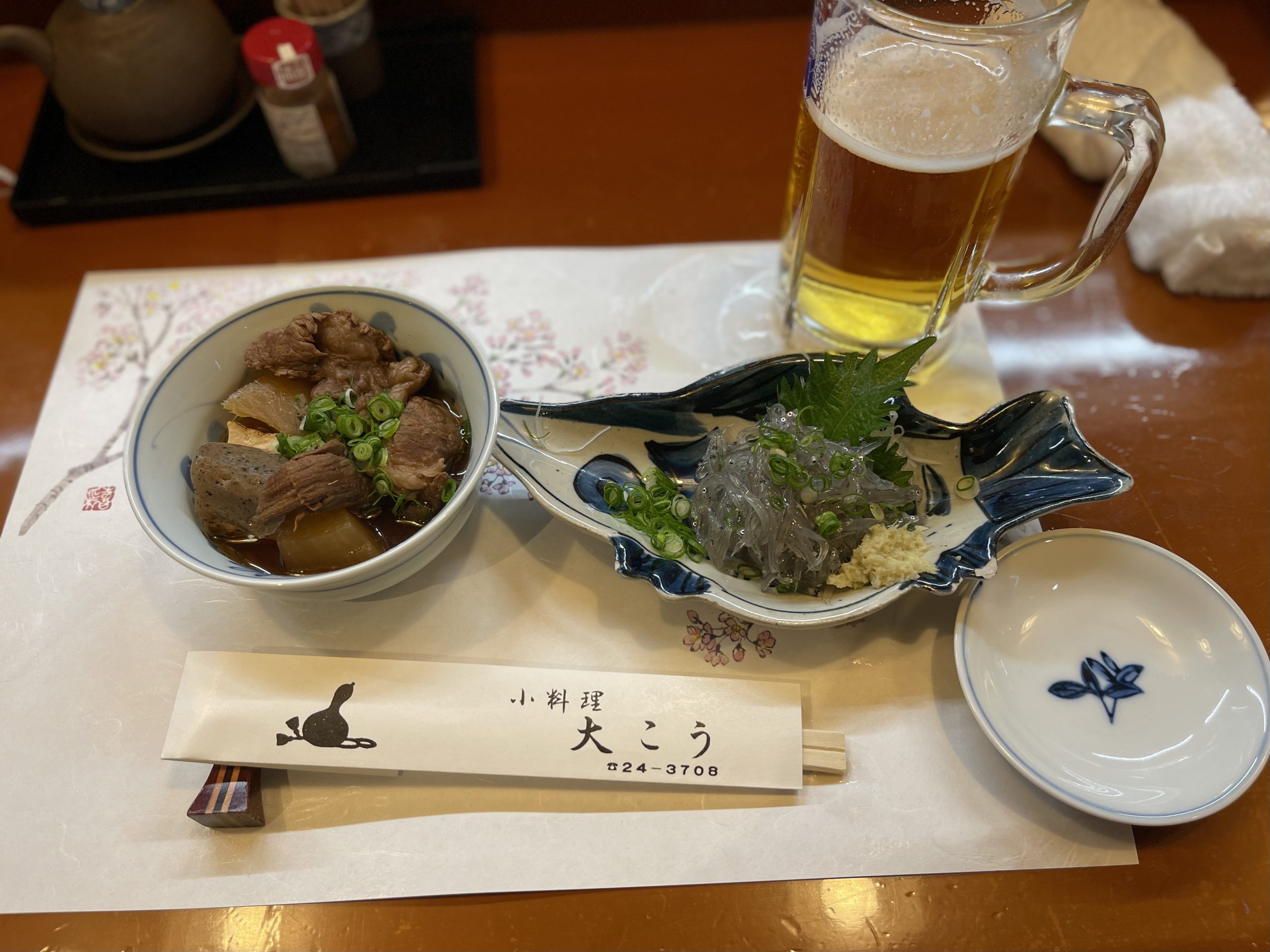 この店、すごい人気でなかなか予約が取れないみたいですよ。昨日は、毎月恒例のしげちゃんとの定例会を開催しました。で、今回選んだのは女房が職場の同僚と行った場所で、大こうという小田原のおしゃれ横丁にある割烹の店でした。