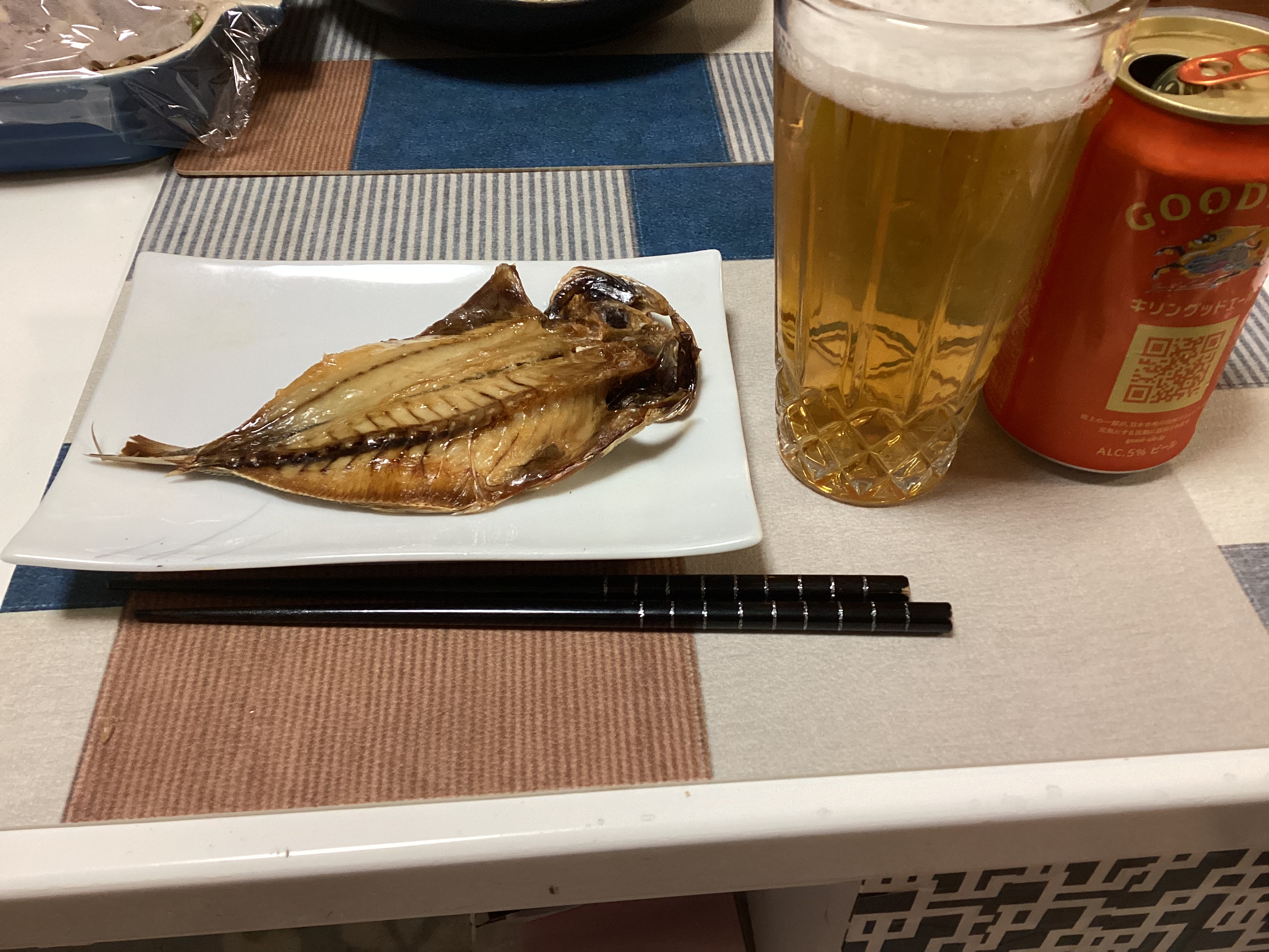 仕事おわりのビールと焼きたてのアジの開きは最高ですね!
